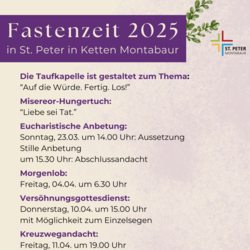 Sonntag, 23.03. um 14.00 Uhr: Aussetzung Stille Anbetung um 15.30 Uhr: Abschlussandacht […]
