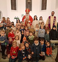 St. Peter Montabaur Kirchorte St. Peter und Paul Arzbach 40 Jahre St. Nikolausaktion der Kita St. Georg und der Theatergruppe Arzbach Rainer Lehmler Zum Ende des Gottesdienstes versammelt sich die fro