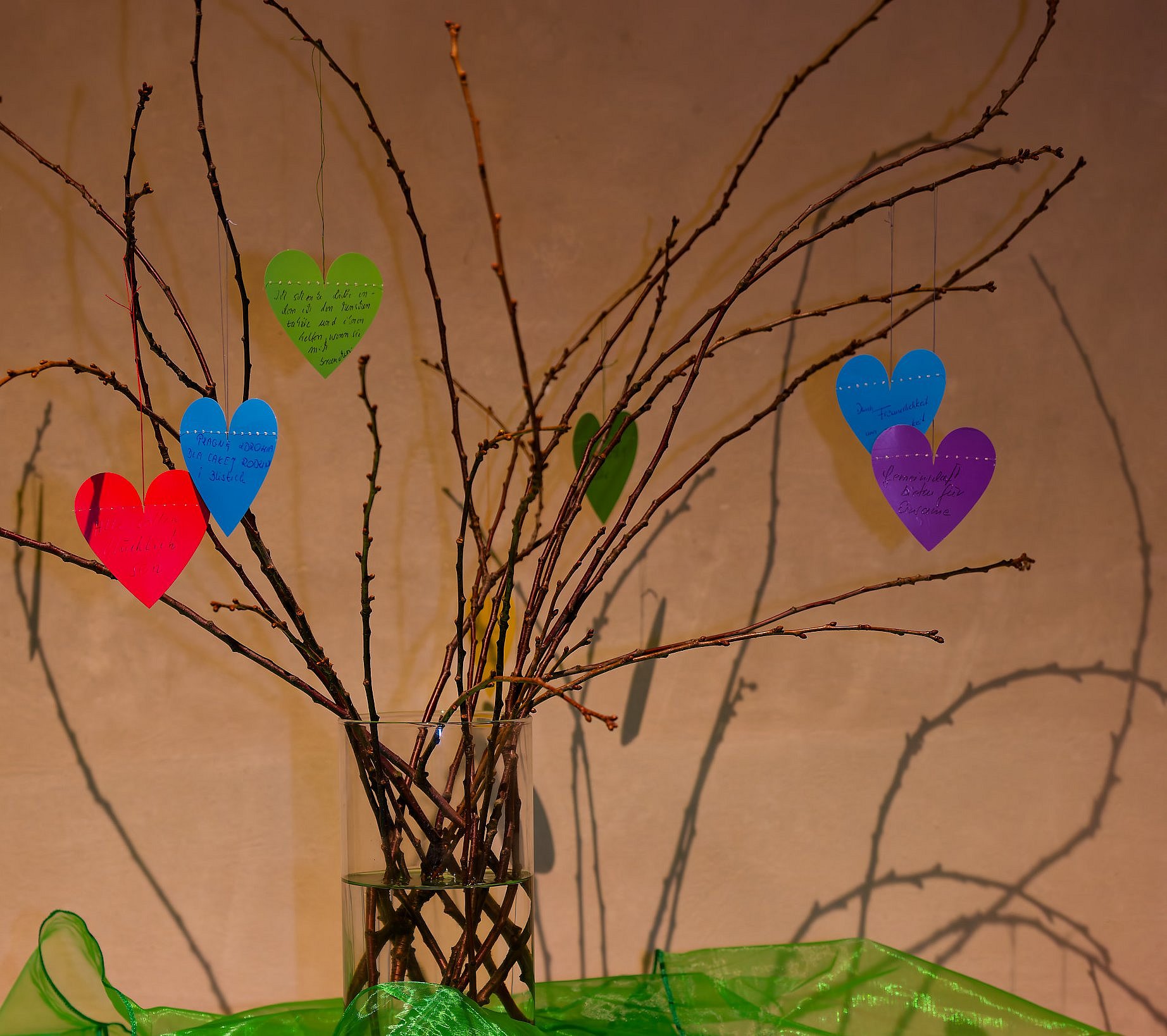 Liebe ist der Anfang aller Wege, so auch in dieser Adventszeit. Wir können unser Herz öffnen und Liebe schenken. Wem möchte ich gerne eine Botschaft mit guten Wünschen schreiben? Dazu liegt ein Herz aus, auf dem ich meine Gedanken notieren und an den "Baum der Liebe" aufhängen kann.