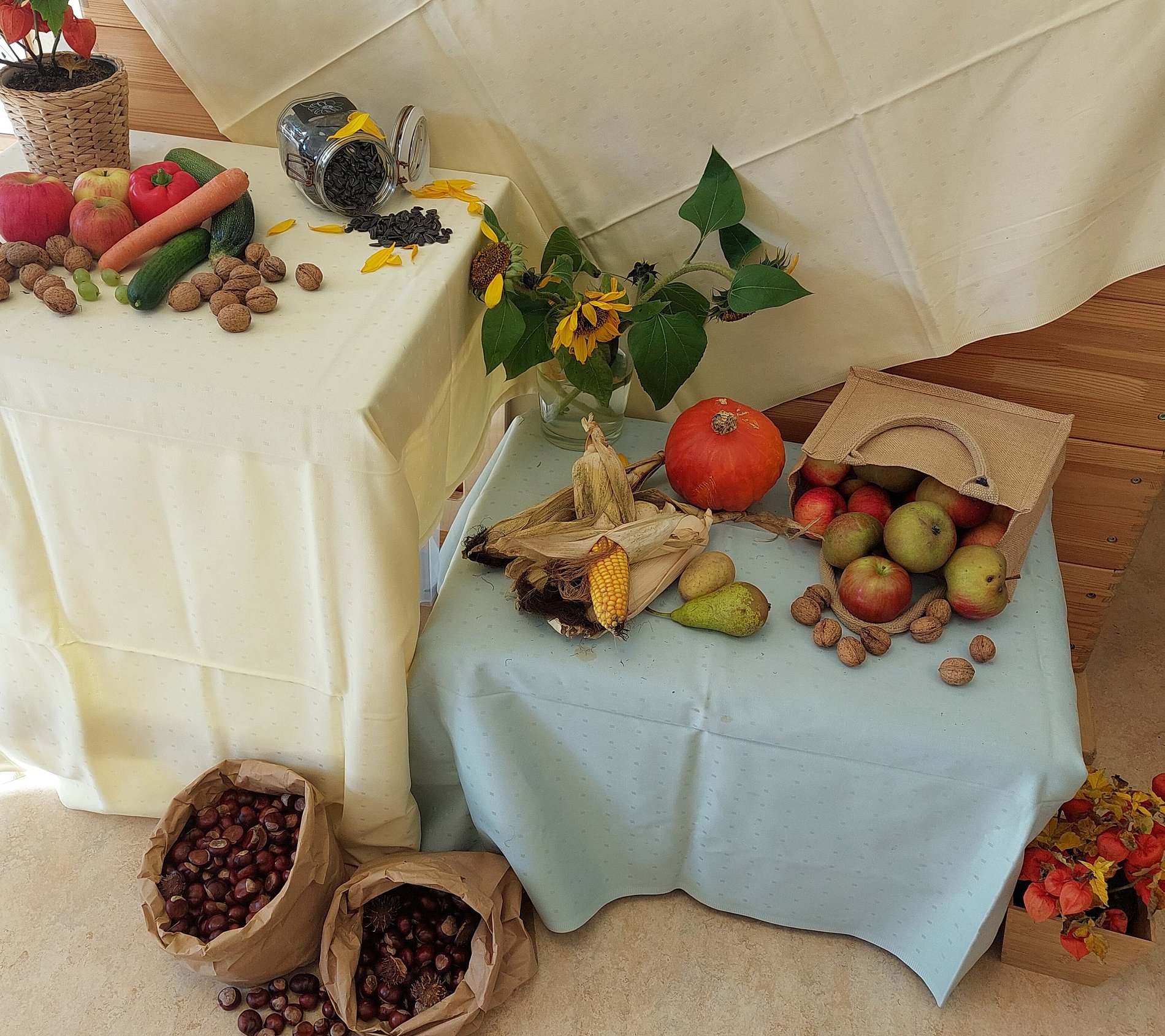 Zum Abschluss erhielt jedes Kind eine Walnuss vom Erntealtar – als kleines Symbol für die Fülle des Herbstes und als Erinnerung an diesen besonderen Tag.