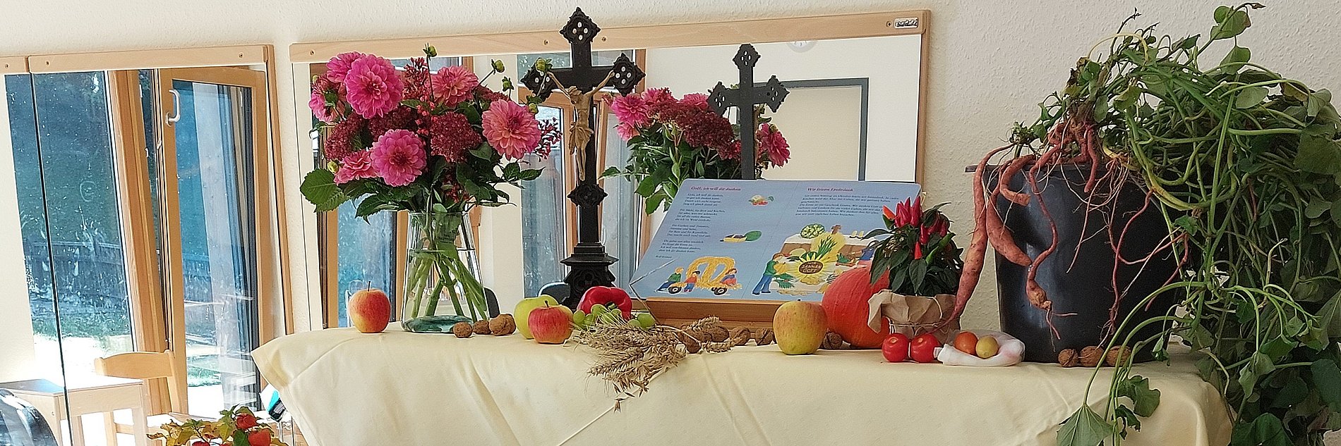 Im Vorfeld beschäftigten sich die Kinder mit Bilderbüchern zum Thema Erntedank. Außerdem integrierten die Fachkräfte das Thema in die Bewegungserziehung und andere pädagogische Angebote, sodass die Kinder auf vielfältige Weise die Bedeutung von Dankbarkeit und Natur erfahren konnten. Ein liebevoll gestalteter Erntealtar symbolisierte die Fülle und den Dank für die Gaben der Natur.