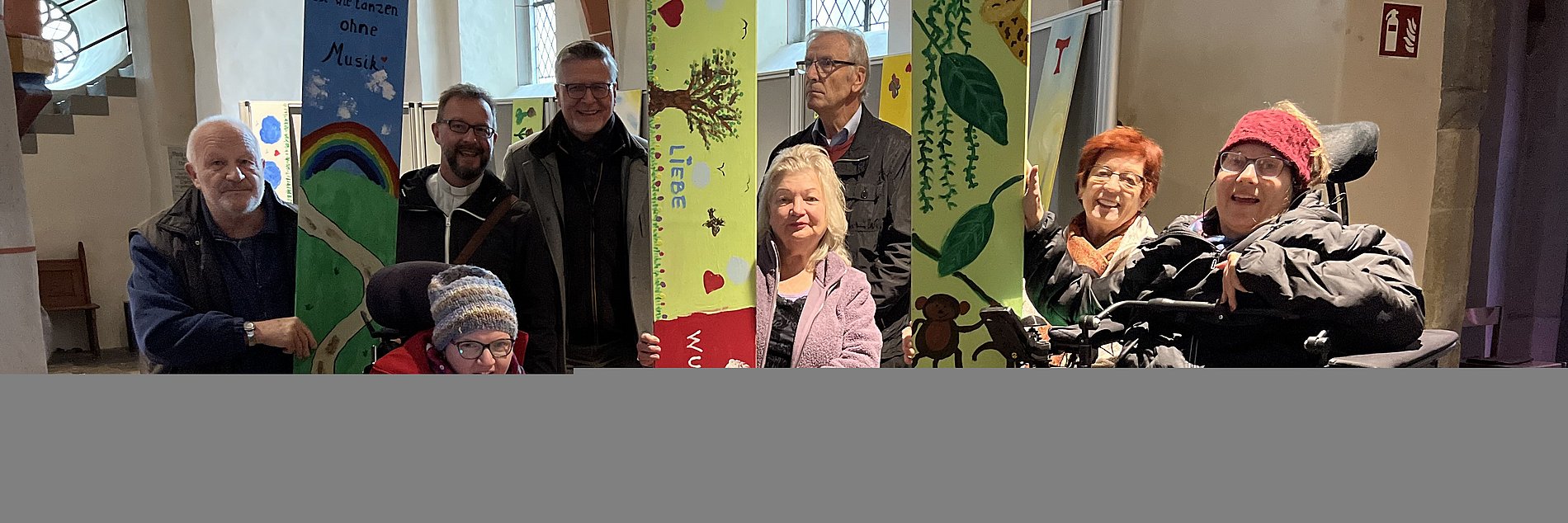 Ein besonderes Highlight sind die Werke eines inklusiven und ökumenischen Workshops, der von der evangelischen und katholischen Kirchengemeinde initiiert und in der Caritaswerkstatt durchgeführt wurde. In kreativer Zusammenarbeit von 20 Teilnehmerinnen und Teilnehmern entstanden dort 14 kunstvoll bemalte und beschriftete Holzbretter, die im linken Ausstellungsbereich der Kirche ihren Platz gefunden haben. Sie wurden feierlich gesegnet und tragen die Handschrift vieler Menschen, die ihre Hoffnungen, Gedanken und Gefühle in Farben und Worte gefasst haben.