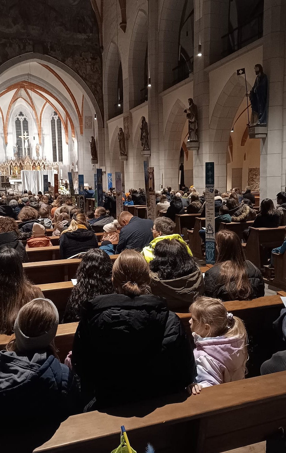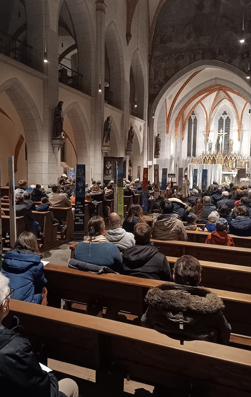 Nach einem stimmungsvollen Wortgottesdienst mit Pfarrer Steffen Henrich und dem von Rita Krock (Amateurtheaters „die-oase“) mit Kindern einstudierten Martinsspiel setzte sich der bunte Laternenzug in Bewegung. Begleitet wurde er musikalisch vom Musikverein Holler, der mit vielen Musikerinnen und Musikern für festliche Stimmung sorgte.