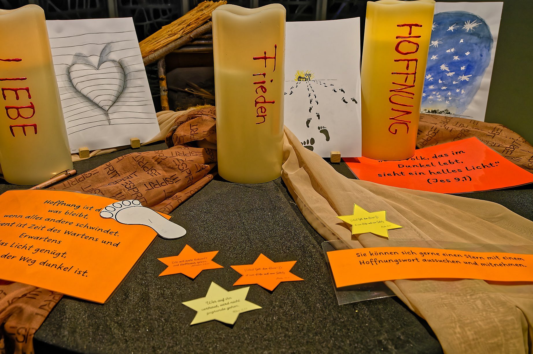 In der Taufkapelle in der Pfarrkirche gibt es viele Hoffnungssterne zum mitnehmen.