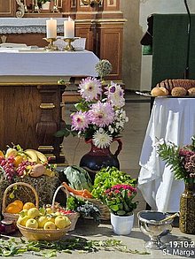 Ein wahrer Blickfang war der wunderschön hergerichtete Erntedank-Altar mit Gaben der Natur.