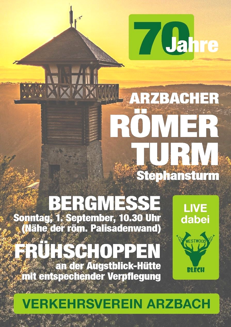 am Sonntag, 1. September um 10:30 Uhr, Nähe der Pallisadenwand. Anschließend Frühschoppen mit dem Verkehrsverein Arzbach an der Augstblick-Hütte.