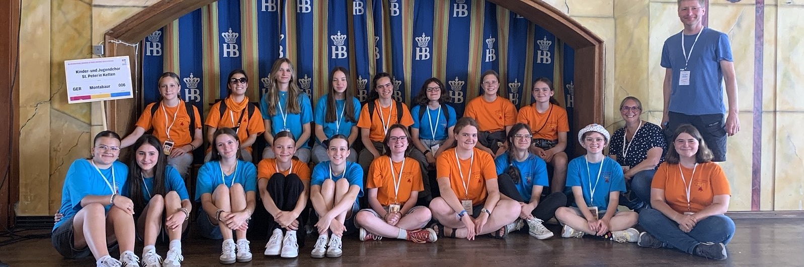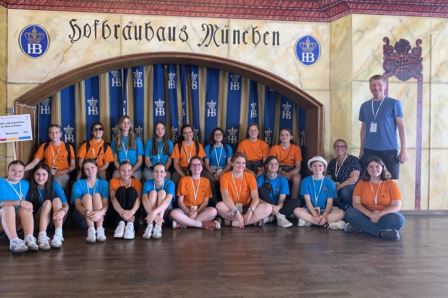 Anlass war das dortige Internationale Chorfestival des Chorverbandes "pueri cantores", zu dem 160 Chöre aus 18 Ländern zusammengekommen waren. Auf dem Programm standen Begegnungskonzerte, Friedensgebete, Offene Singen, open-air-Präsentationen, eine XXL-Chorparty sowie ein festlicher Abschlussgottesdienst auf dem Marienplatz mit Kardinal Reinhard Marx. Die Verpflegung für alle Chöre erfolgte in mehreren Schichten im geräumigen Hofbräuhaus, wo auch das Foto entstand.