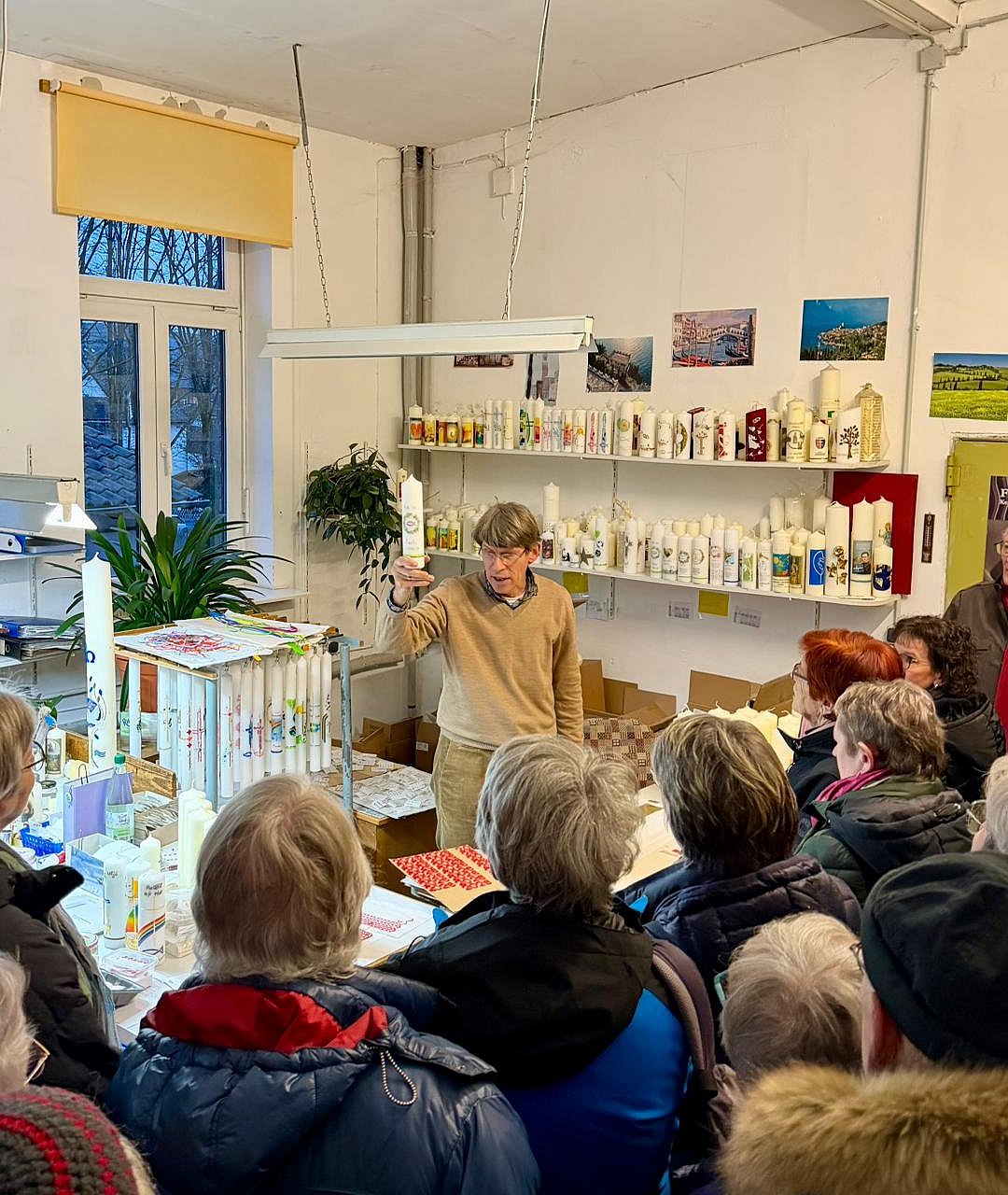 Über 70 Interessierte folgten der Einladung. In zwei Gruppen führte Geschäftsführer Johannes Becker-Flügel durch die Gebäude der Kerzenmanufaktur. Das Familienunternehmen produziert seit dem Jahr 1792 am Standort Montabaur Kerzen und wird mittlerweile in der siebten Generation geführt. Damit ist die Kerzenmanufaktur Flügel die älteste noch produzierende Firma der Stadt. Während eines spannenden Rundgangs erhielten die Teilnehmerinnen und Teilnehmer Einblicke in den gesamten Herstellungsprozess – vom Rohmaterial bis zur fertigen, kunstvoll verzierten Kerze. Zu religiösen Anlässen, zu wichtigen privaten Feiern, zum Gedenken und jedem Anlass sind Kerzen vorhanden oder werden im Auftrag hergestellt. Den vorläufigen Abschluss bildete ein gemütliches Beisammensein im Kerzenfachgeschäft bei einem kleinen Imbiss und der Gelegenheit, im vielfältigen Sortiment zu stöbern.