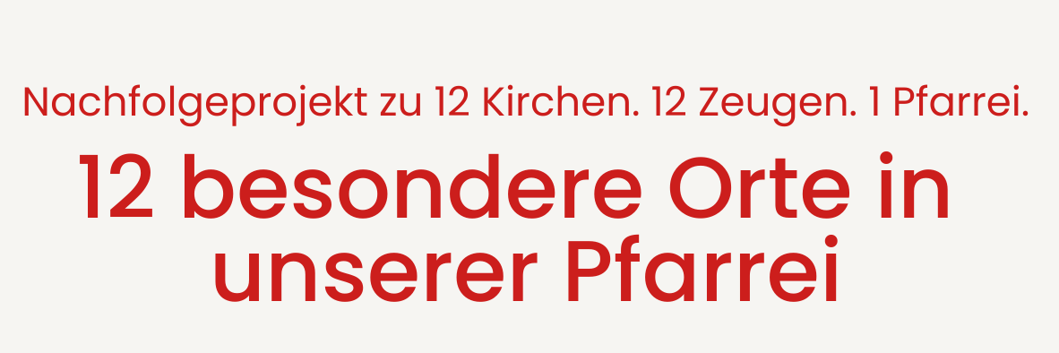 Im Rahmen des Projekts „12 Kirchen. 12 Zeugen. 1 Pfarrei.“ haben wir in den letzten beiden Jahren gemeinsam viele Kirchen und Kapellen in unserer Pfarrei kennengelernt. Eine ganz besondere Art, die einzelnen Kirchorte zu entdecken und in den Austausch zu kommen. Wir bedanken uns ganz herzlichen bei allen, die organisiert, unterstützt, musiziert, mitgewirkt und teilgenommen haben.