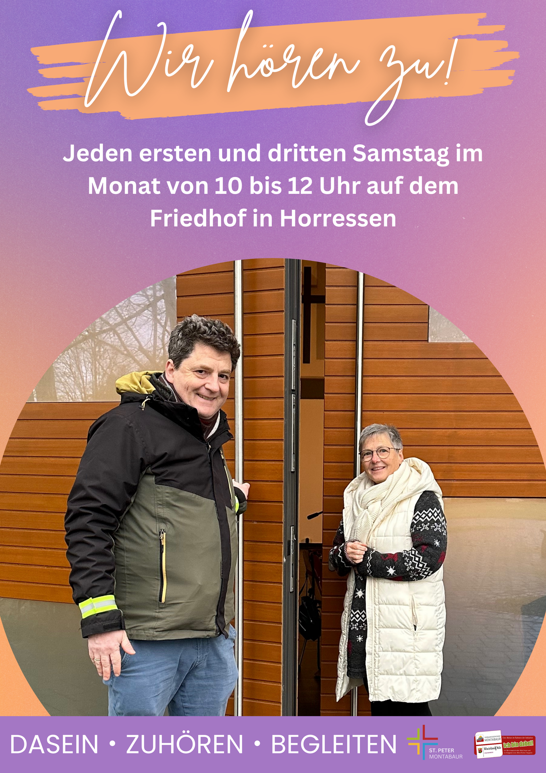 Ab sofort hat die ehrenamtliche Seelsorgerin Ingrid Müller mit der Unterstützung von Pastoralreferent Gunnar Bach jeden ersten und dritten Samstag im Monat von 10.00 bis 12.00 Uhr ein offenes Ohr für Trauernde und Menschen mit Redebedarf in der Friedhofshalle in Horressen.